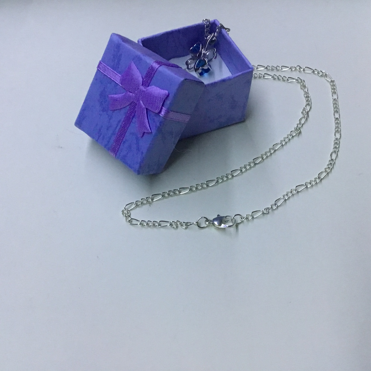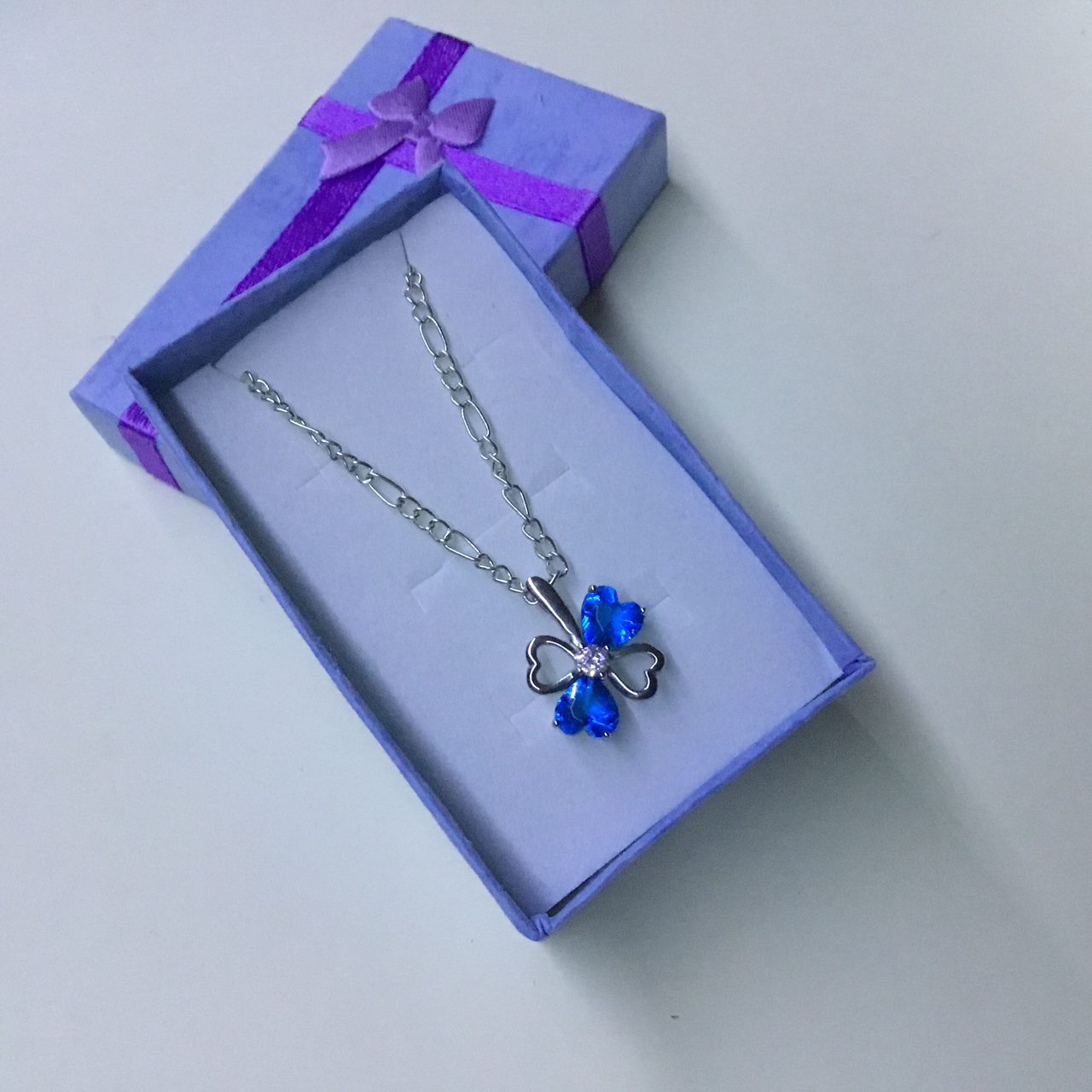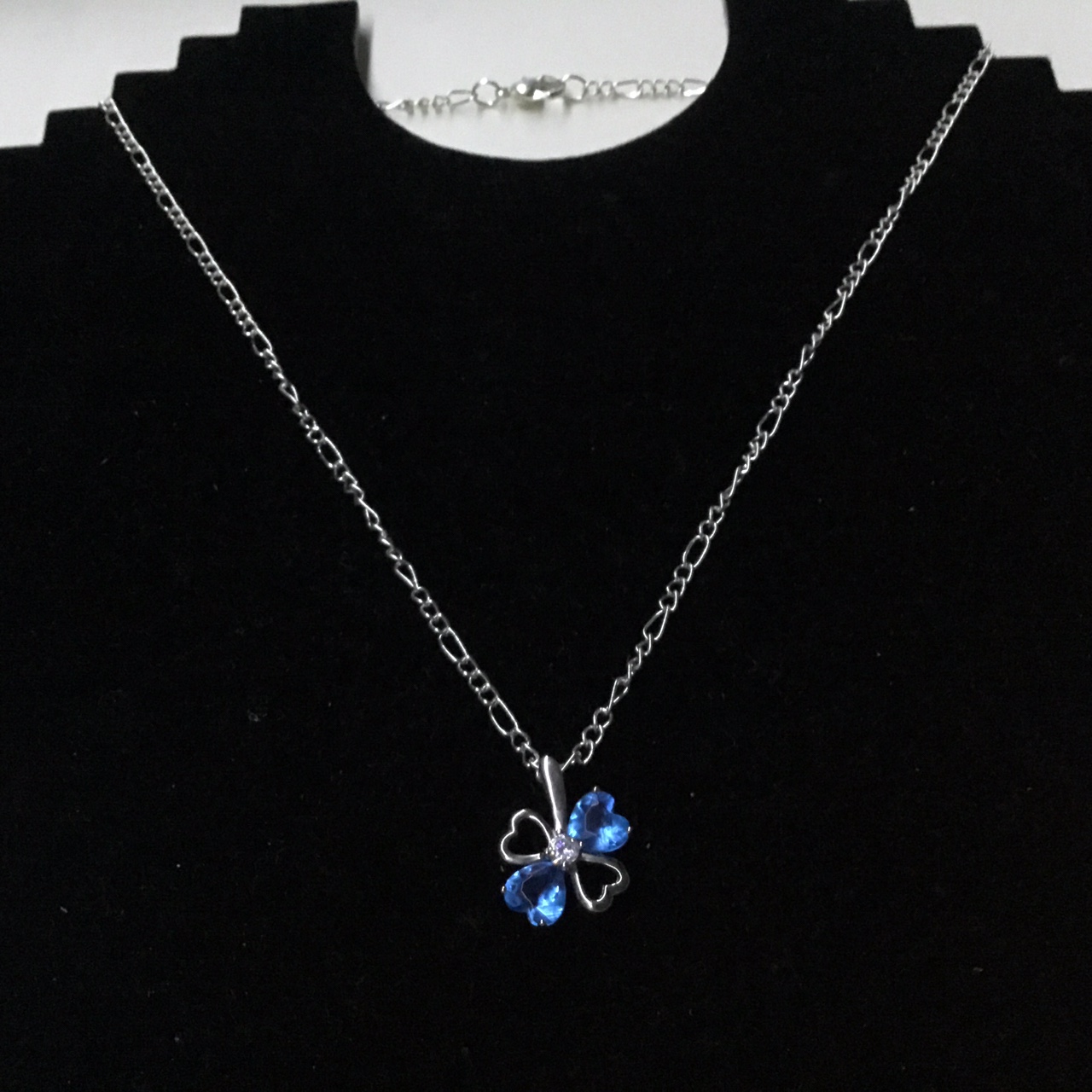 Sparkling Crystal Zirconia Clover Leaf Blue Colour Women Silvery Necklace