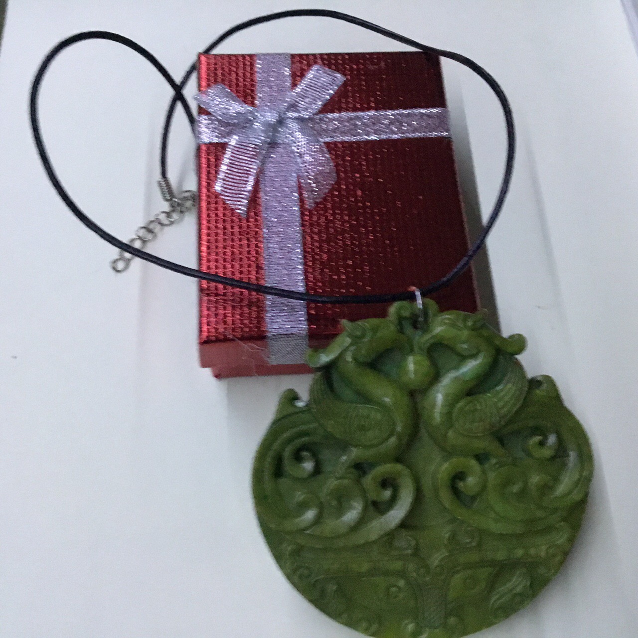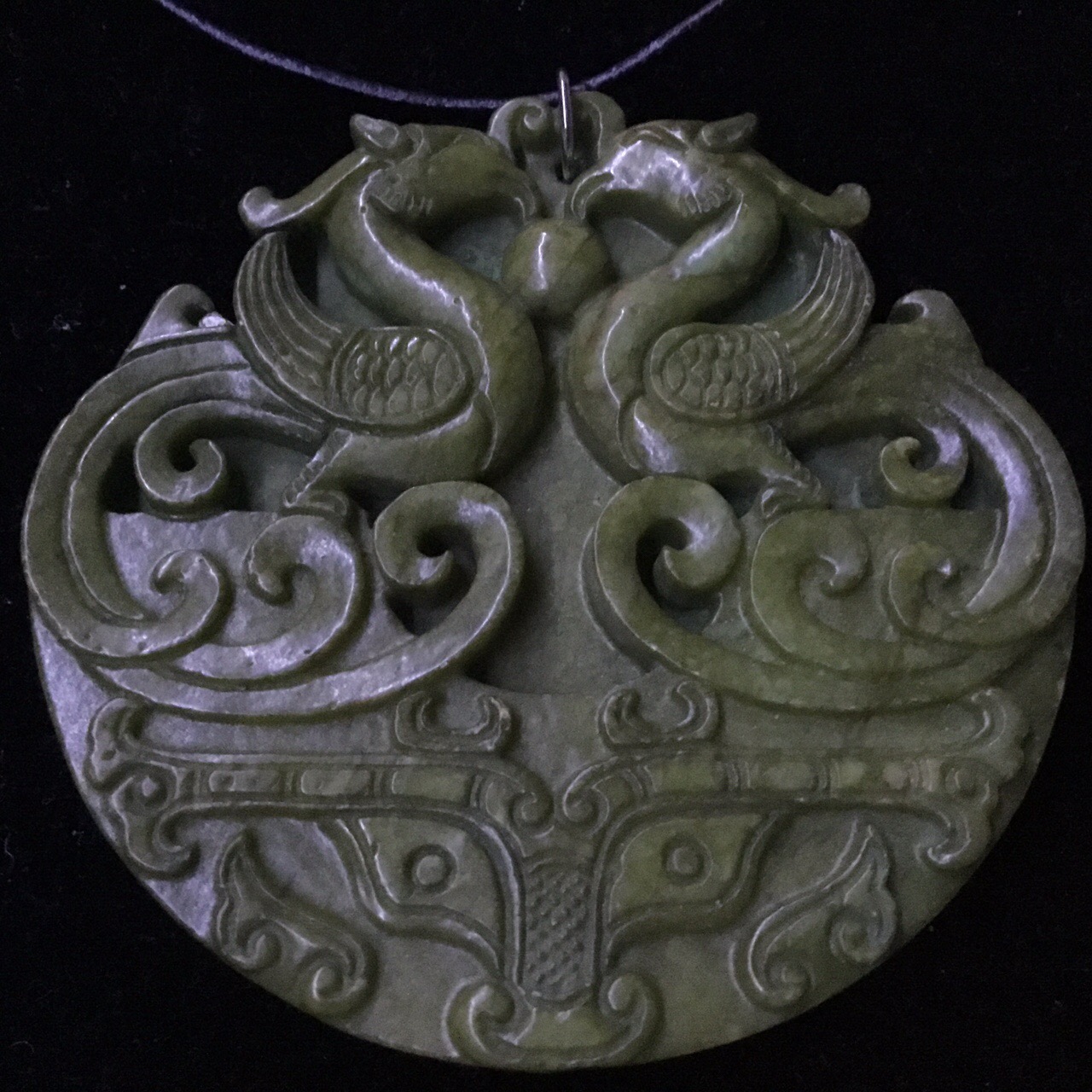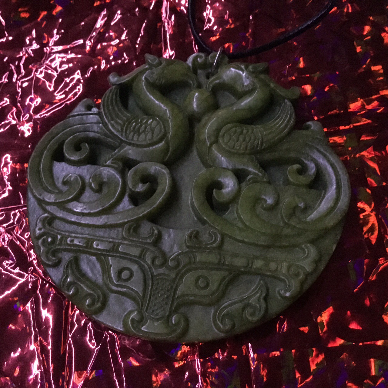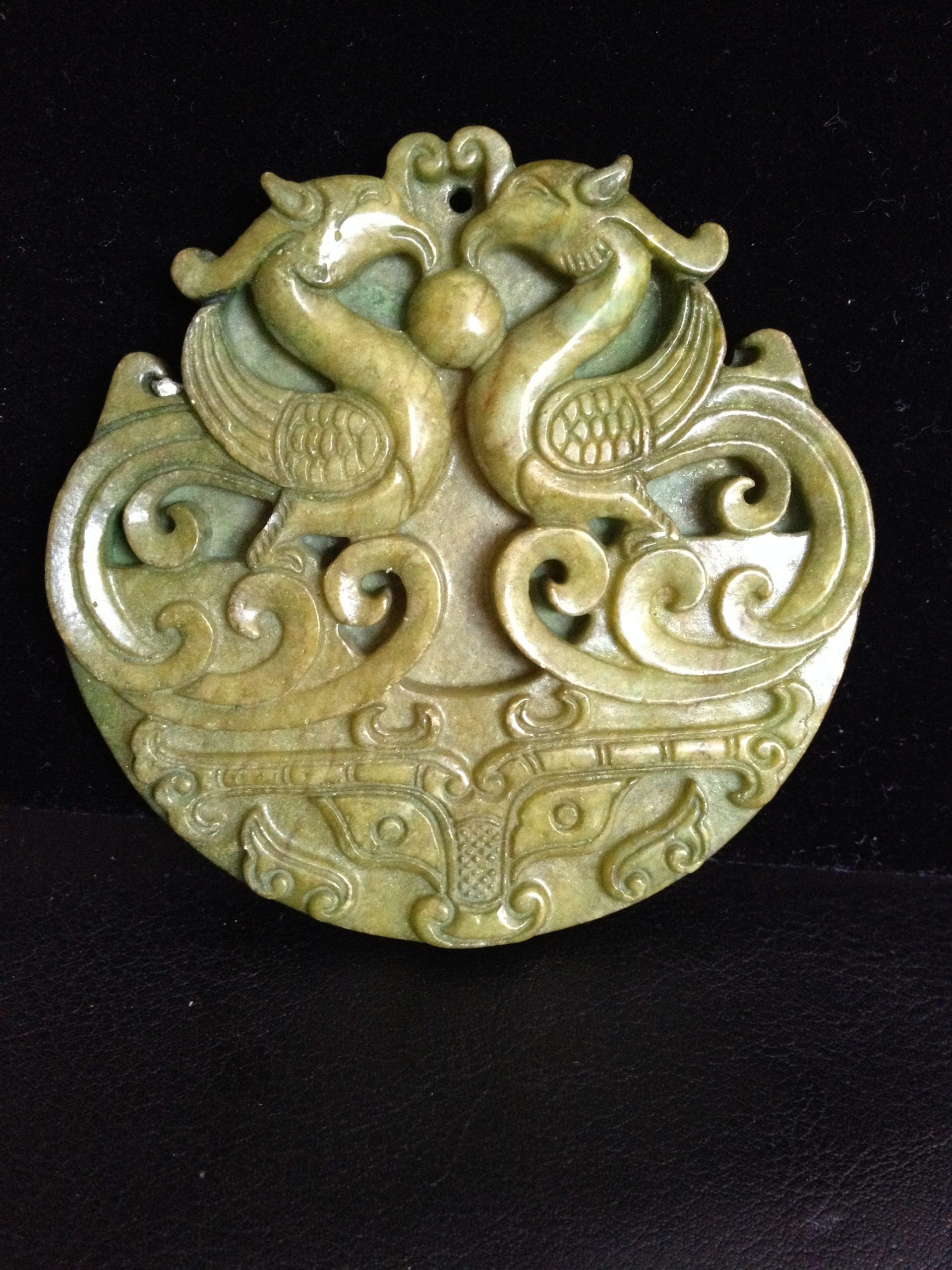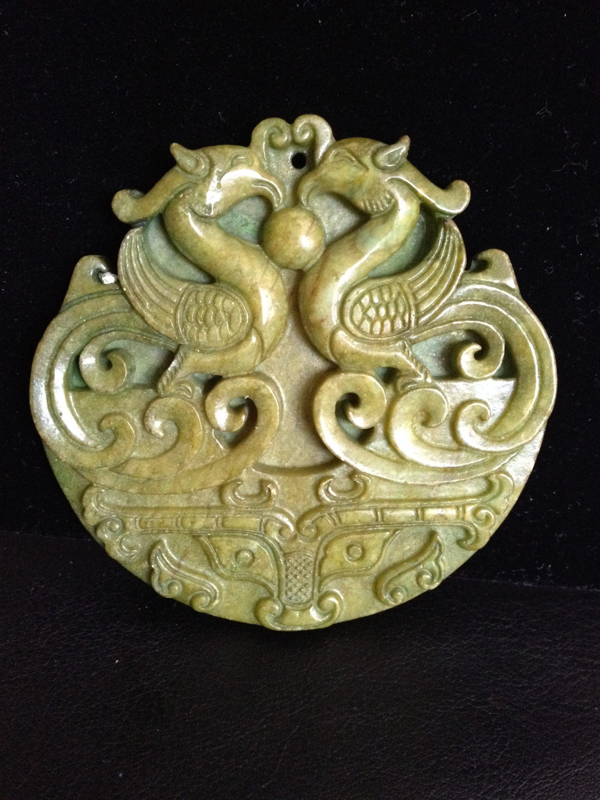 Double Phoenix Big Jade Handmade Carved Green Jade Stone Colour Women Leather Necklace