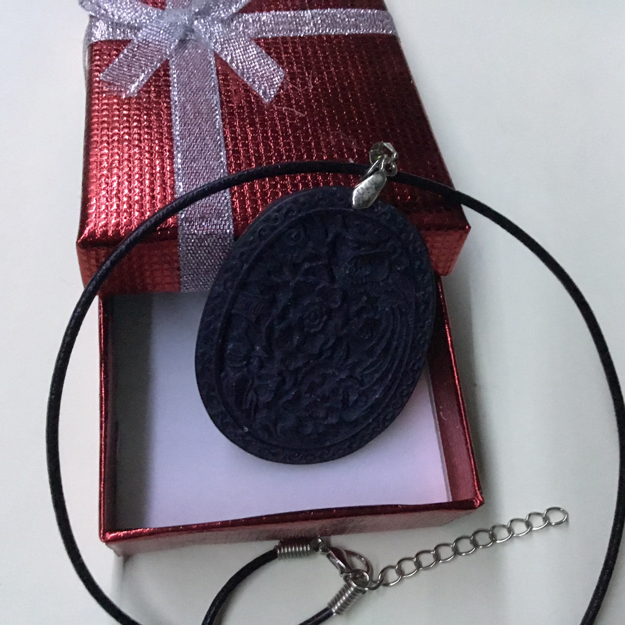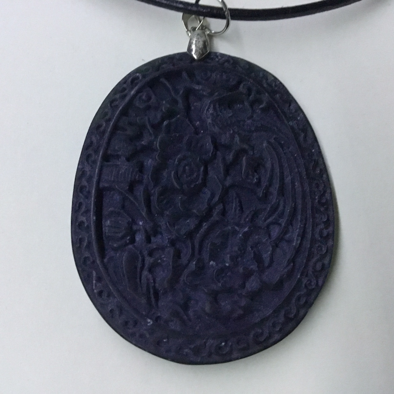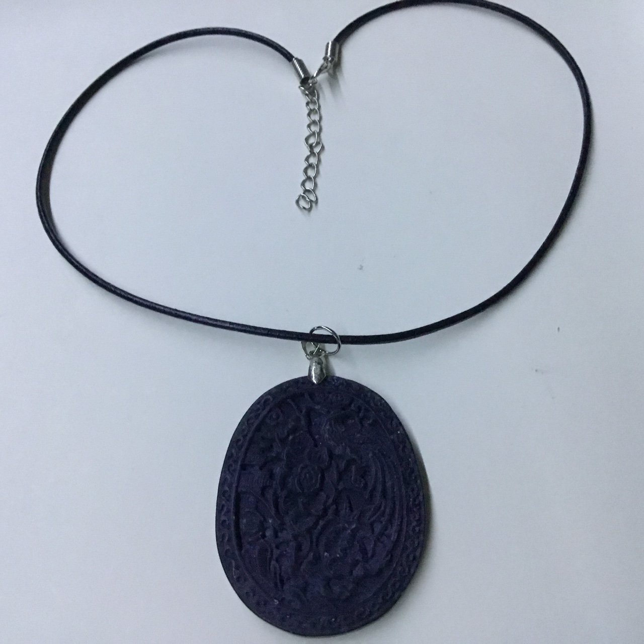 Handmade Carved Black Stone Colour Unisex Leather Necklace